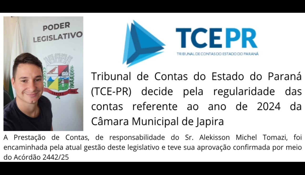 PRESTAÇÃO DE CONTAS DE 2024 DA CÂMARA DE JAPIRA É JULGADA REGULAR PELO TCE-PR